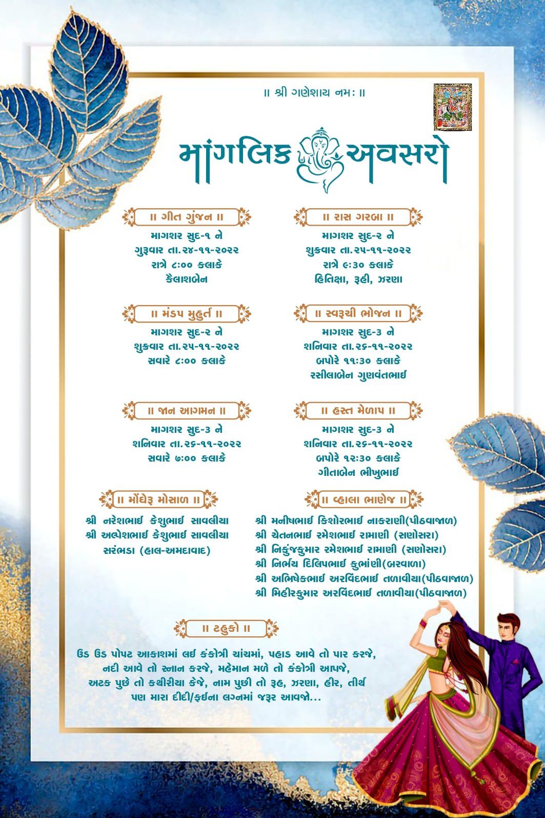 Additionally, with a digital kankotri, you can easily send out invitations via email or social media platforms such as Facebook or WhatsApp. This makes it easier for your guests to RSVP and keep track of who has responded so far.